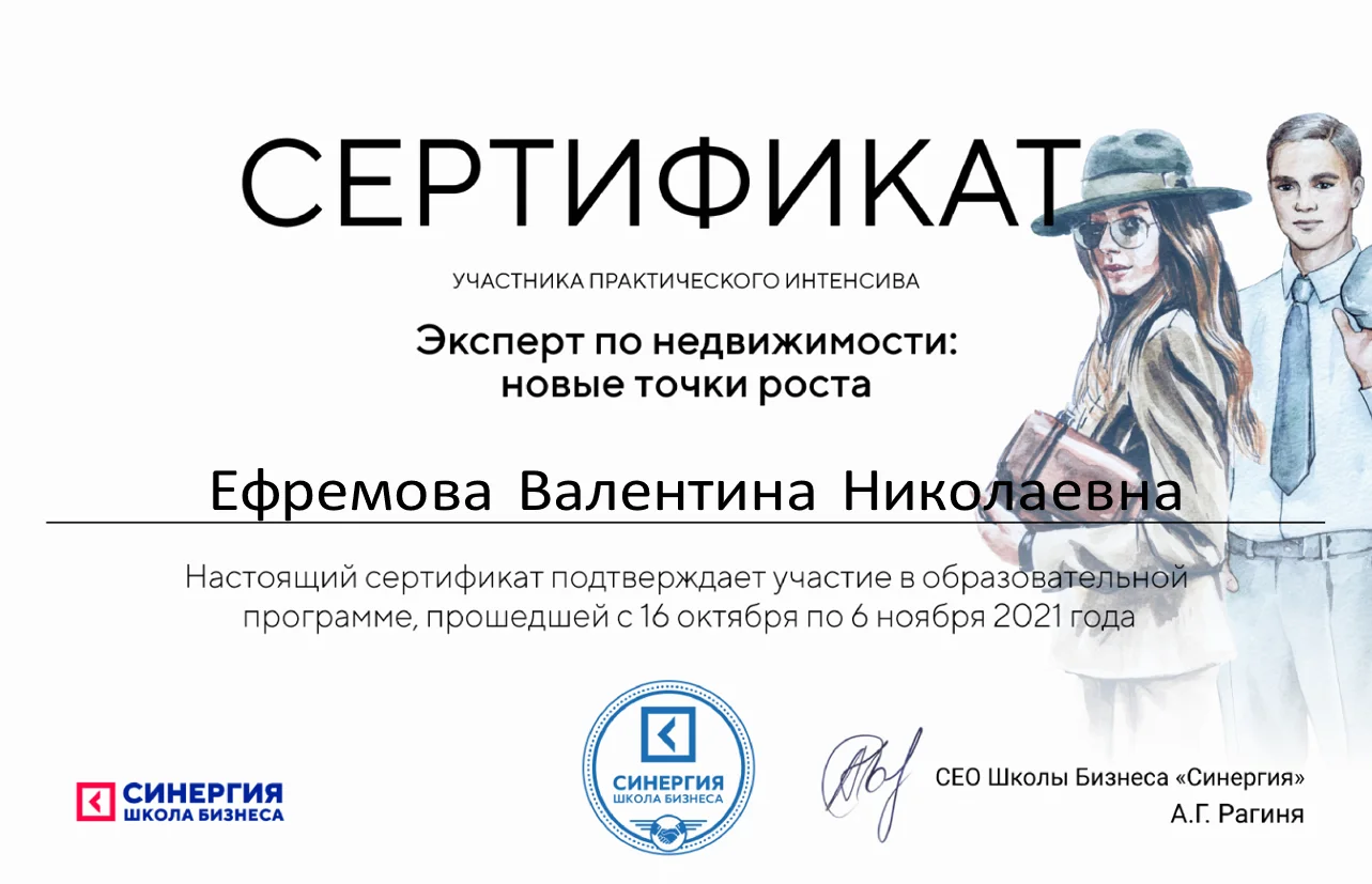Меня зовут Валентина Ефремова, я профессиональный агент по недвижимости в Сочи. Предоставляю широкий спектр услуг частного риэлтора: покупка, продажа недвижимого имущества, сопровождение, юридическая поддержка, сбор документов, консультации и многое другое.